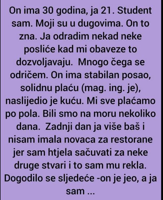 Zadnji dan ja više baš i nisam imala novaca za restorane jer sam htjela sačuvati za neke druge stvari i to sam mu rekla.