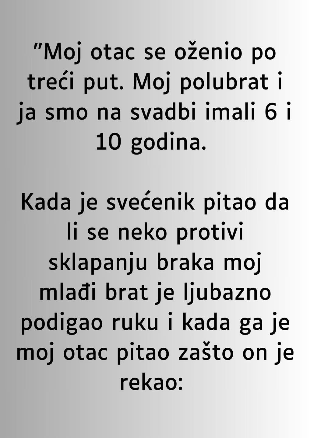 “Moj otac se oženio po treći put. Moj polubrat i ja smo na svadbi imali 6 i 10 godina. Kada