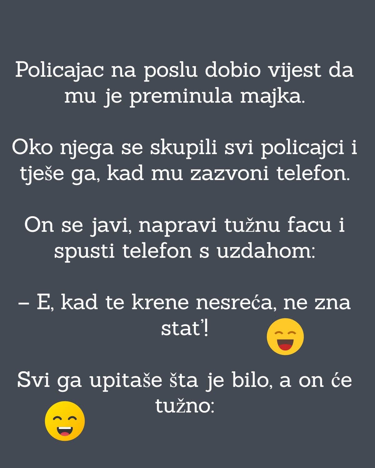 Read MorePolicajac na poslu dobio vijest da mu je preminula majka. Oko njega se skupili svi policajci i tješe ga, kad