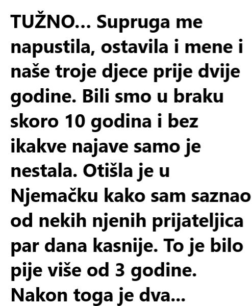 Read MoreTUŽNO… Supruga me napustila, ostavila i mene i naše troje djece prije dvije godine. Bili smo u braku skoro 10