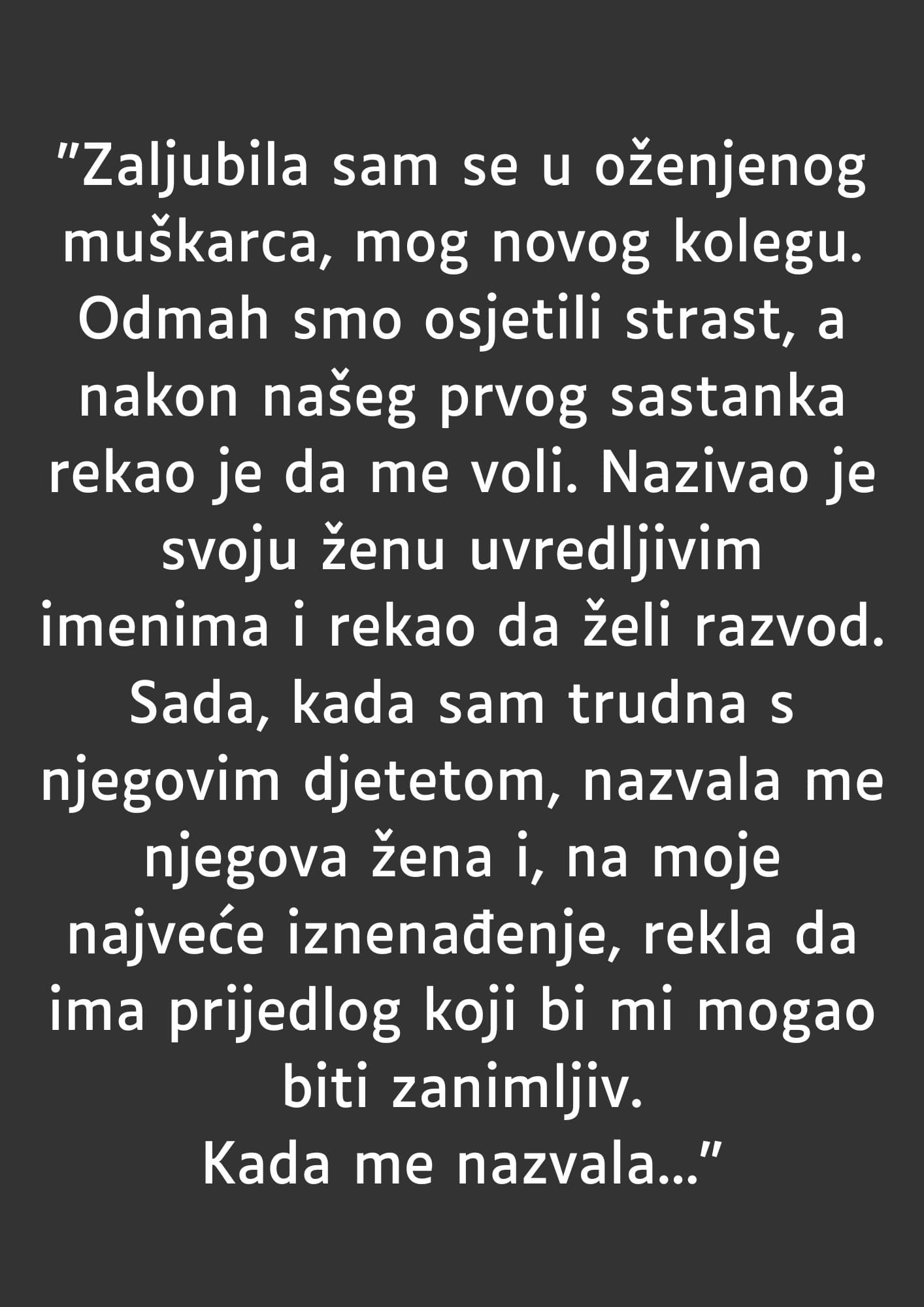 Read More“Zaljubila sam se u oženjenog muškarca, mog novog kolegu. Odmah smo osjetili strast, a nakon našeg prvog sastanka rekao je
