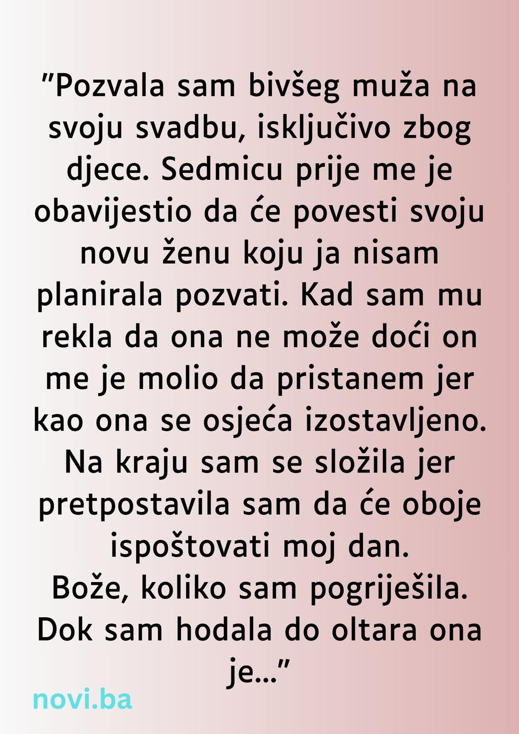 Read More“Pozvala sam bivšeg muža na svoju svadbu, isključivo zbog djece. Sedmicu prije me je obavijestio da će povesti svoju novu